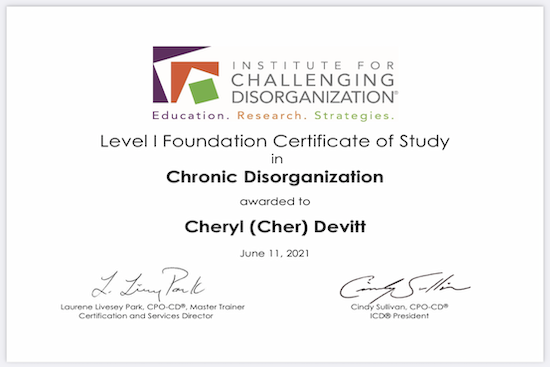 "Cher helped me deal with years of clutter. Having her was like having three extra people to help. She never judges; she helps you meet your own goals. She is the best."